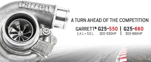 The G-Series G25-550 and the G25-660 turbochargers are compatible with 1.4L – 3.0L engine displacements and capable of producing up to 550 and 660 horsepower. G Series 25 turbochargers are smaller and outflow all comparable products on the market.