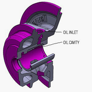 A single stage oil passage directs pressurized oil to the new oil cavity ensuring proper bearing lubrication at both sides of the cartridge.