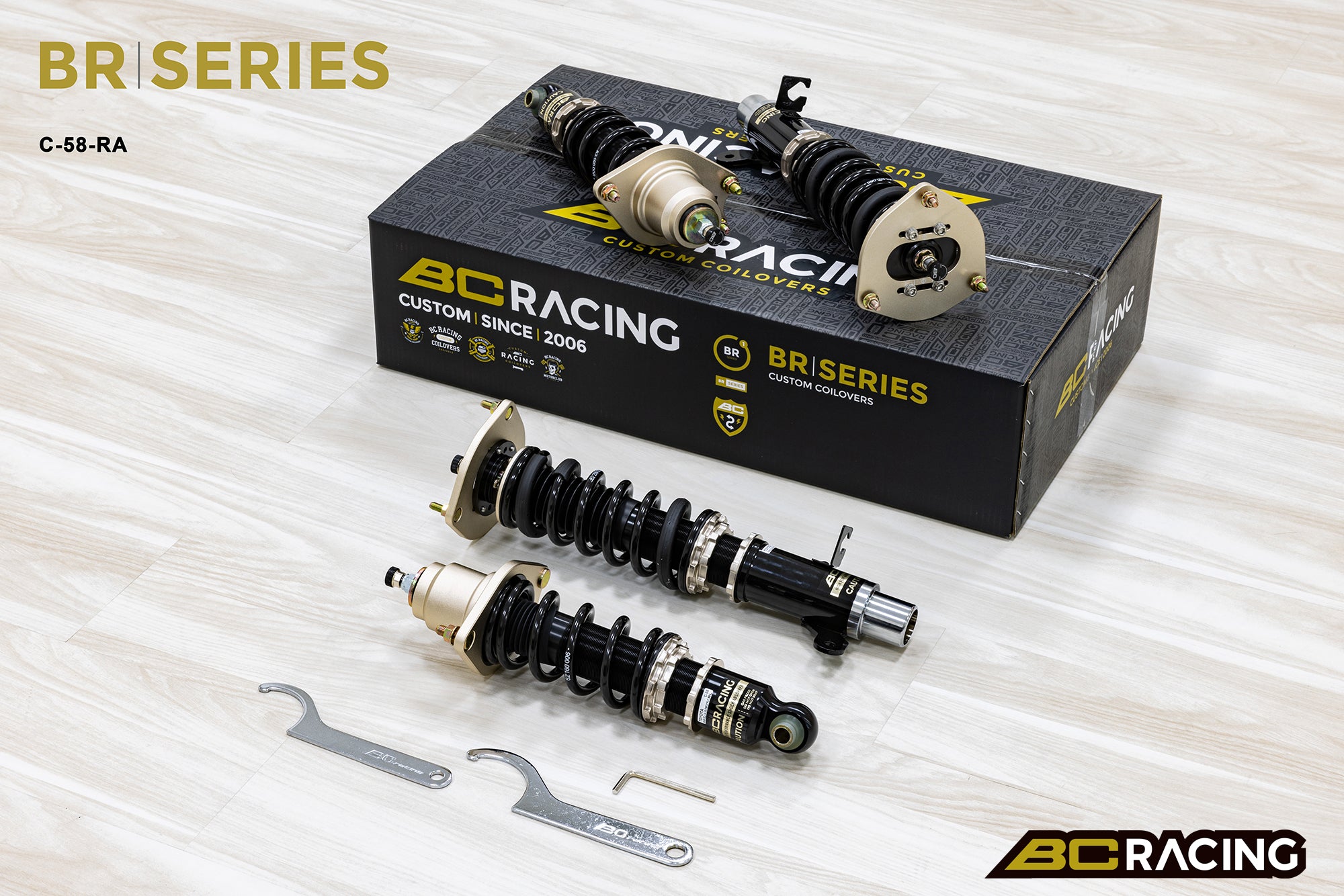 Here at Group D, we have been using and distributing BC Racing suspension with great success for many years now. In our experience, the combination of great damping characteristics, wide damping adjustment range, independent height adjustment, durability through quality construction, a comfortable ride, the ready availability of service parts to keep your coilovers feeling fresh for many years into the future, plus BC's one year warranty, makes BC Racing the easy choice when choosing suspension for your pride and joy.